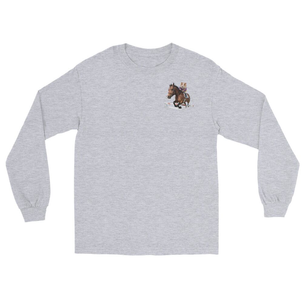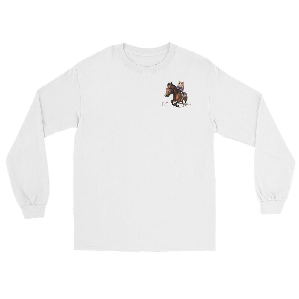 馬に乗ってハードル飛ぶハムスターの長袖Tシャツ