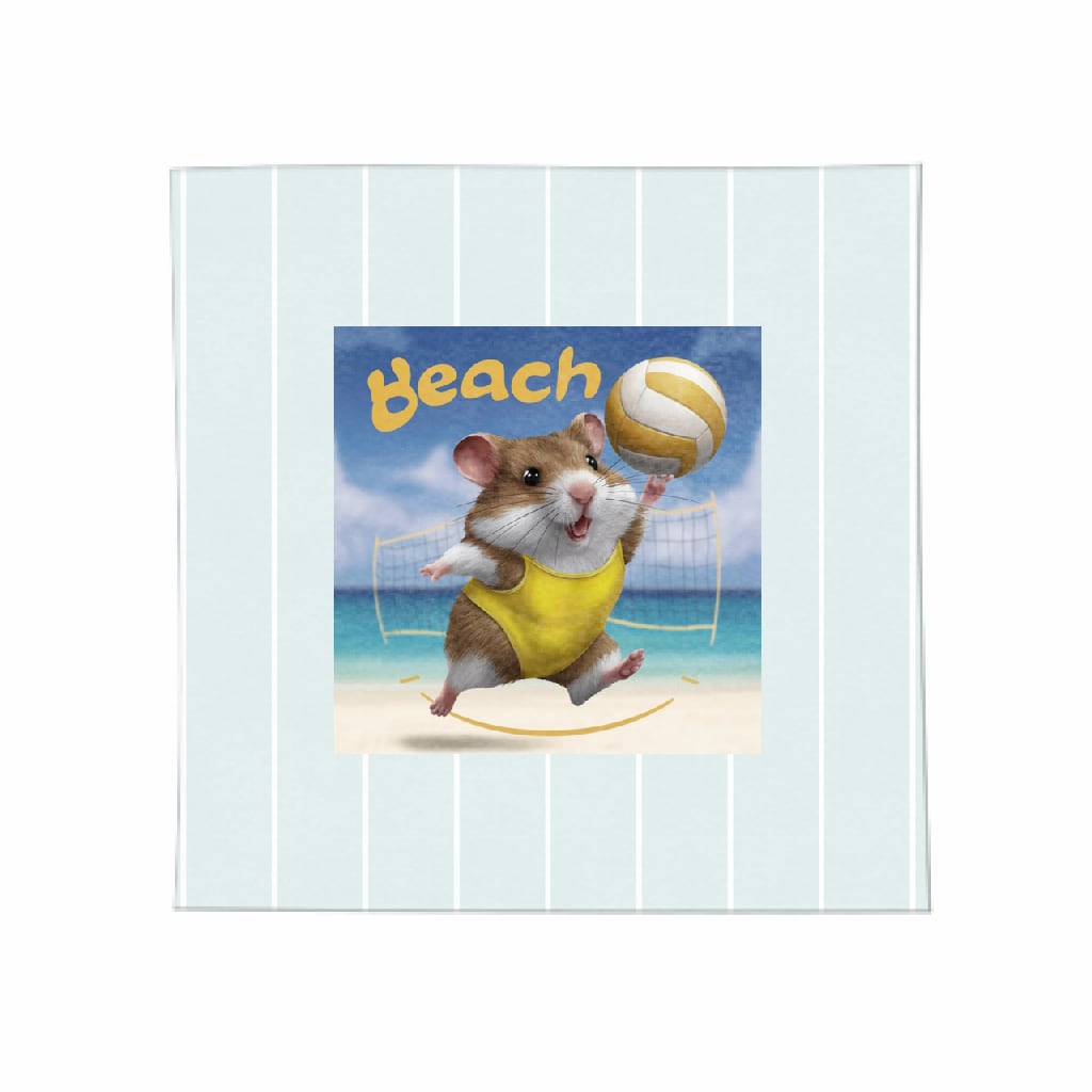 ビーチバレーを楽しむハムスターのミニハンカチタオルは、遊び心満載の愛らしいデザインが魅力のアイテムです!ビーチバレーをするハムスターの姿が描かれ、見るたびに楽しい気分になれます。
