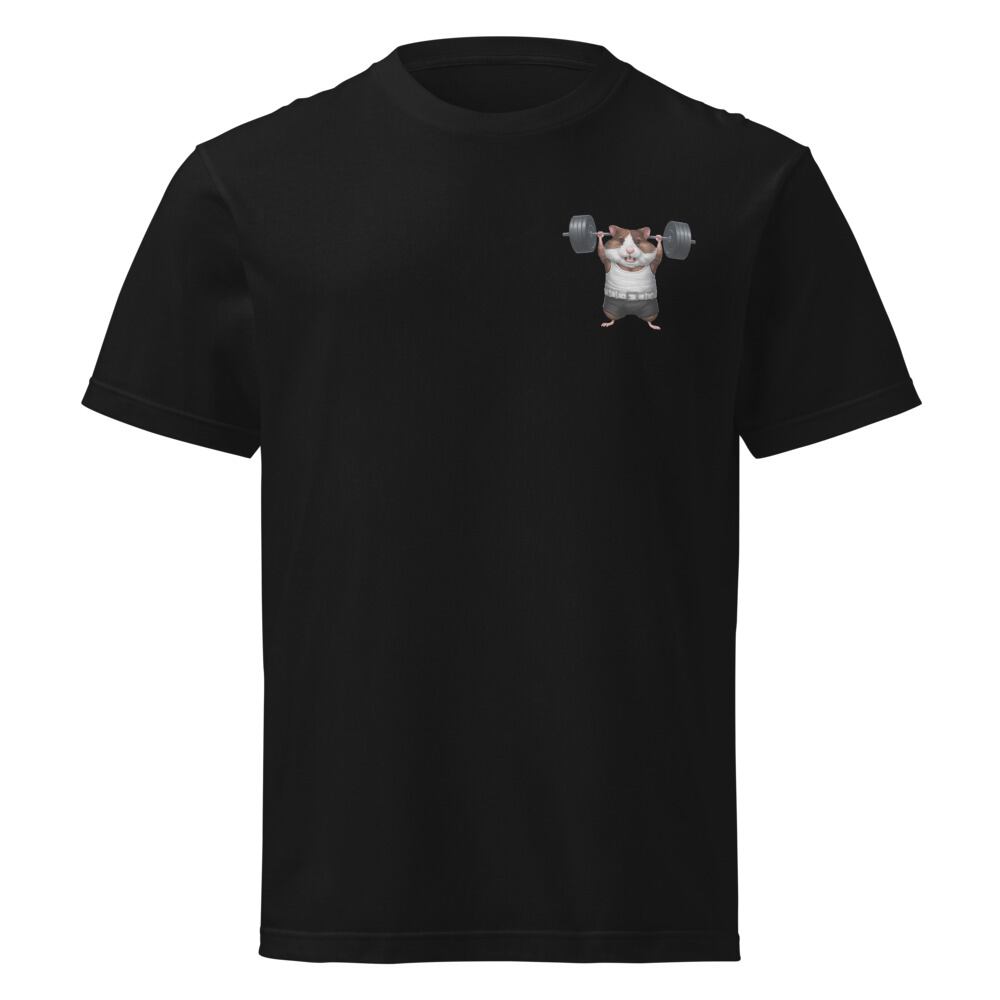 愛らしい「バーベルを持ち上げるハムスター」の半袖Tシャツ!ユニークなデザインのハムスターがバーベルを持ち上げる姿は、見る人に笑顔を与えること間違いなしです。