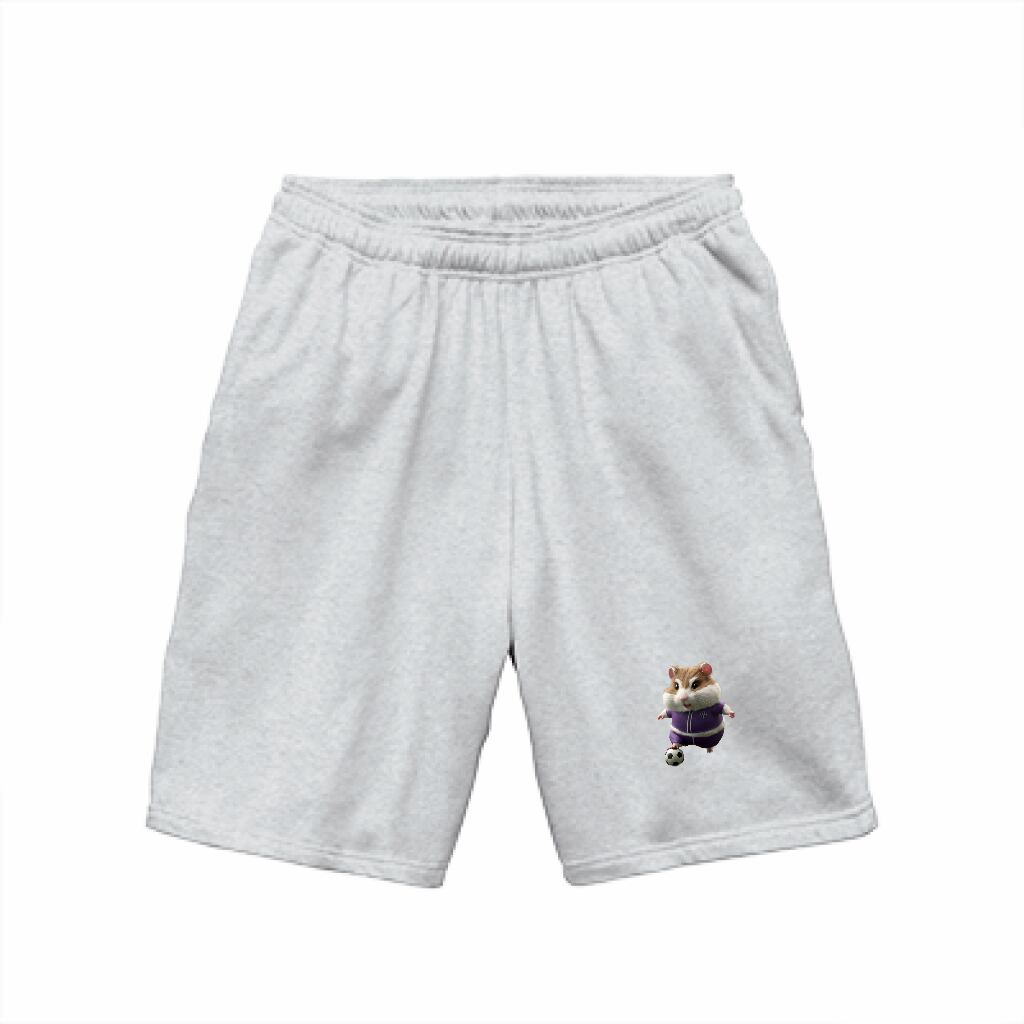 かわいらしい「サッカーをするハムスターのスウェットショーツ」!サッカーを楽しむ小さなハムスターがプリントされたこのショーツは、リラックスした日や運動時に最適です。家でのくつろぎタイムやアウトドアでのアクティブなシーンでも大活躍すること間違いなしです!