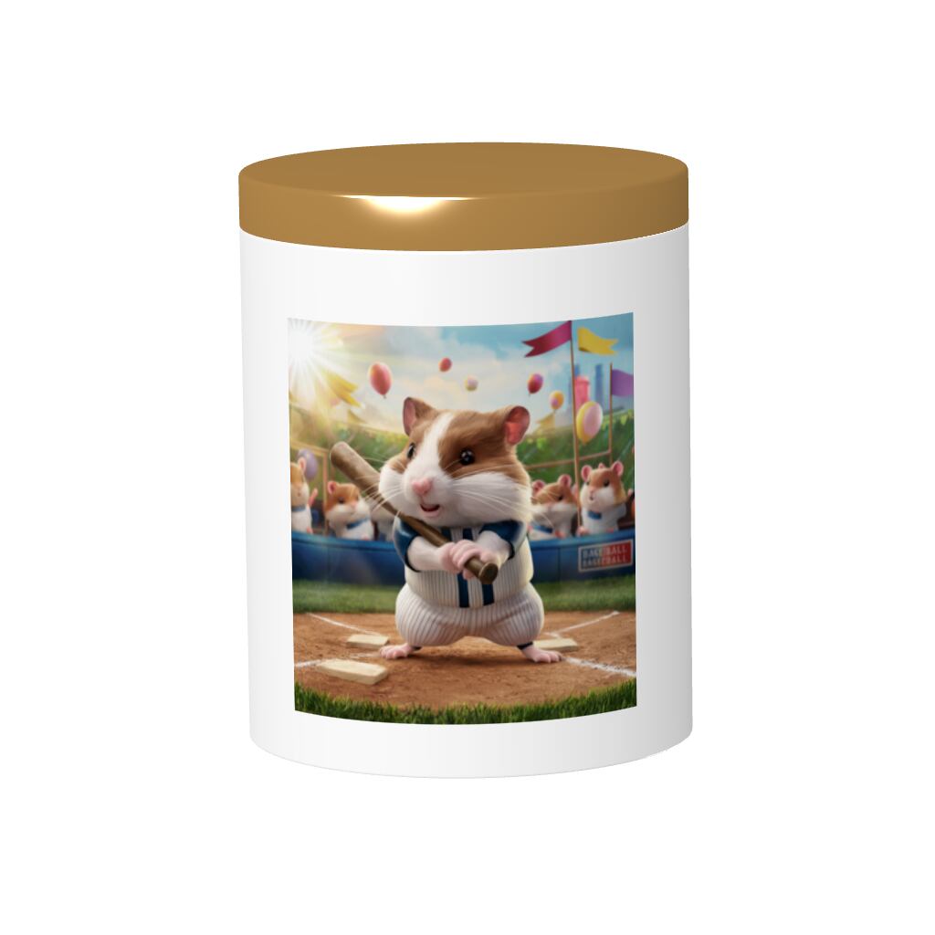 かわいらしい「野球をするハムスターの木製ふた付きキャニスター」!野球に夢中なハムスターがデザインされたこのキャニスターは、キッチンやリビングのオシャレな収納にぴったりです。お菓子や小物をすっきりと収納できるので、日常使いに大活躍間違いなしです!