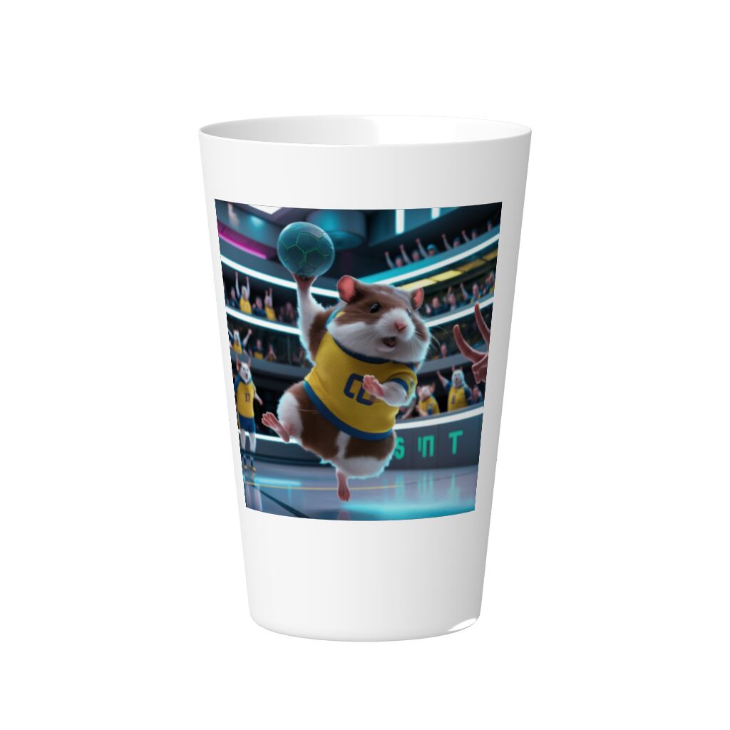 ハンドボールをするハムスターのタンブラー!元気いっぱいのハムスターがハンドボールを楽しむデザインで、日常の飲み物を楽しく彩ります!